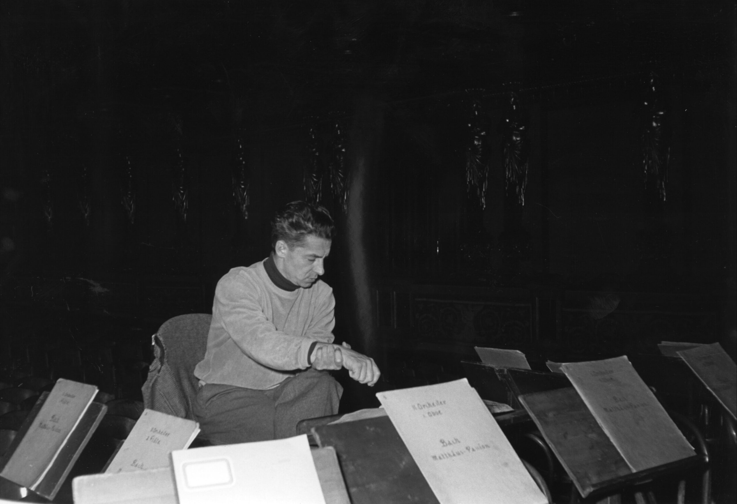 The St Matthew Passion accompanied Herbert von Karajan throughout his career. He conducted the work already in the post-war years, including a performance with the Wiener Symphoniker at the Musikverein in Vienna on 9 June 1950, and returned to it repeatedly in later decades.
