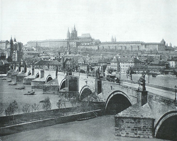 Hradčany (castle of Prague) as seen from the Vltava River, photograph, 19th century